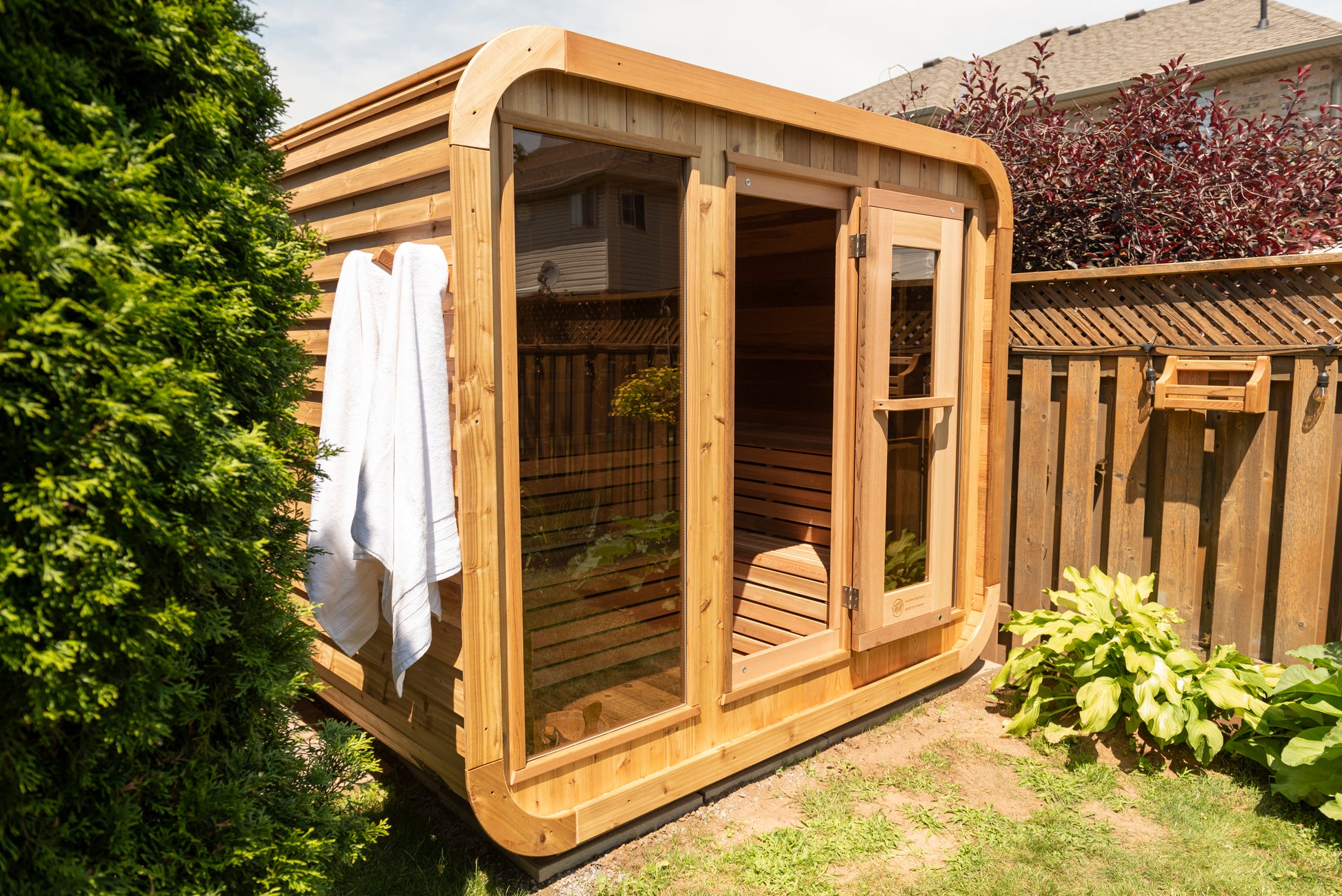 Designed with modern curved edges and crafted from premium Canadian Clear Western Red Cedar, this compact sauna is the perfect choice for couples or small families looking to enjoy the health and relaxation benefits of sauna therapy right in their backyard.